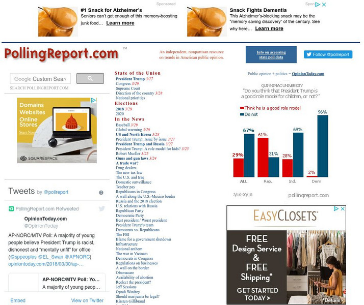 This non-partisan site reports the results of the latest national public opinion polls. Constantly updates and informational.