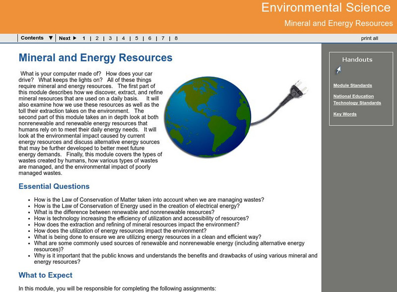 Students explore the topics of mineral extraction, renewable and nonrenewable resources, and hazardous wastes in this comprehensive, interactive module.