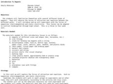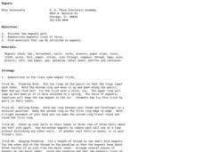Students explore magnetism by observing a series of 8 magnet "tricks" performed by the instructor. In this magnets lesson, students predict which items will be attracted to a magnet and experiment to see if they predicted correctly. They...
