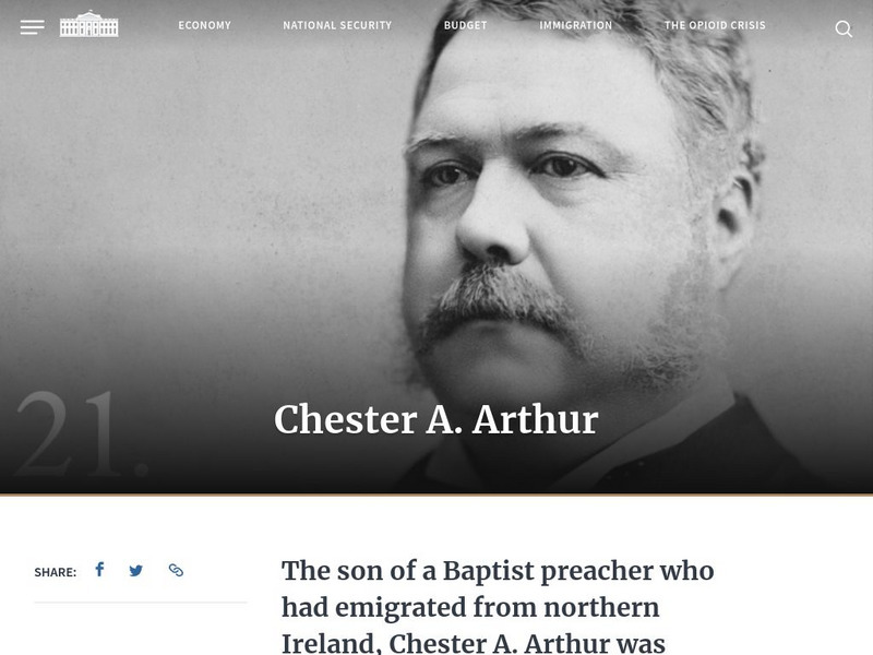 Read a short biography of Chester A. Arthur, Republican president during the Gilded Age. A black and white photo is provided.