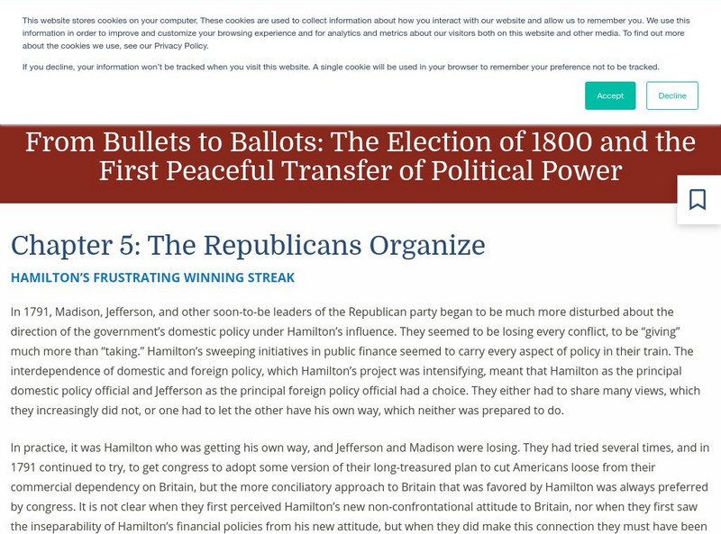 Alexander Hamilton's influences in politics among citizens seemed to create frustration with those who agreed with the philosophies of Thomas Jefferson and James Madison. The Republicans begin organizing themselves.