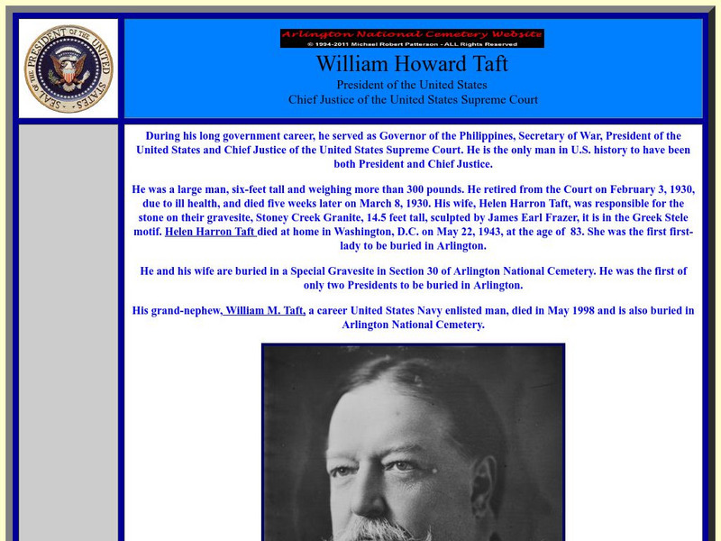 This site from the Arlington National Cemetery provides some intense biographical information on William Howard Taft along with several pictures. The text is somewhat in-depth and is very interesting to check out.