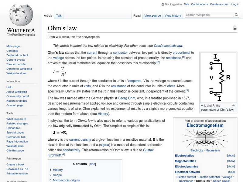 Wikipedia: Ohm's Law
