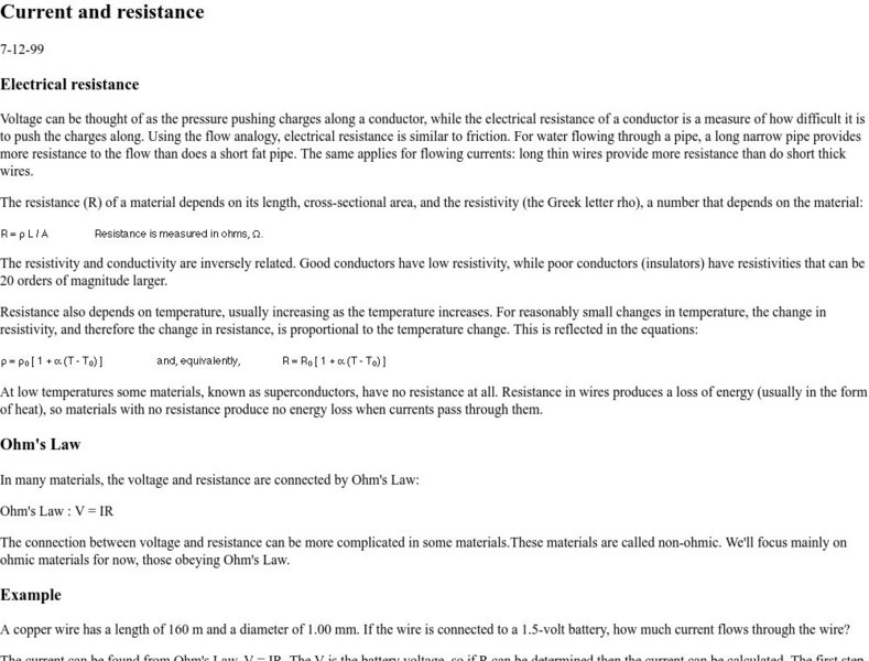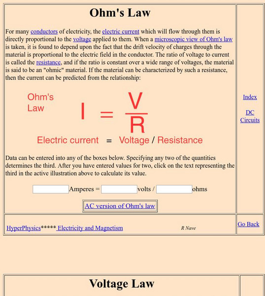 Georgia State University: Hyper Physics: Ohm's Law and Current Law