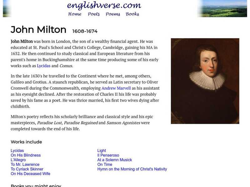 Some of Milton's shorter verse is offered here, along with a biographical sketch.
