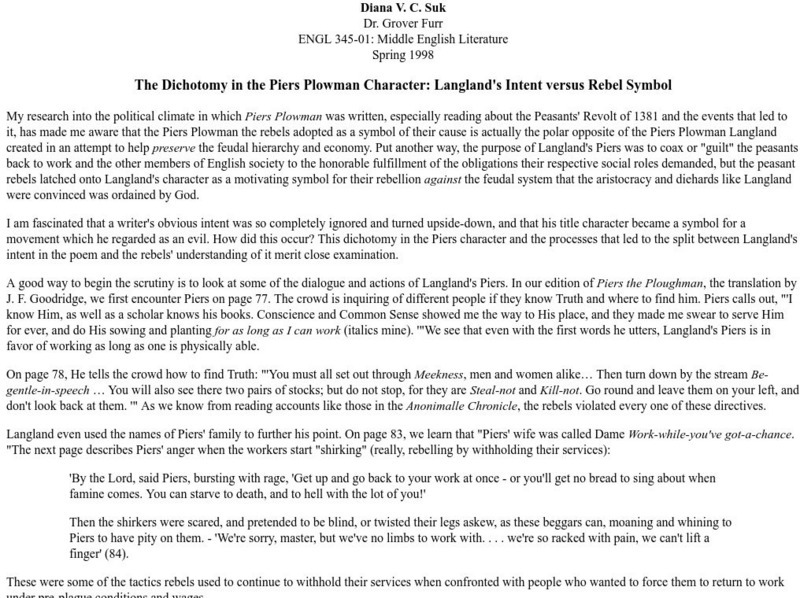 Msc: Dichotomy in the Piers Plowman Character