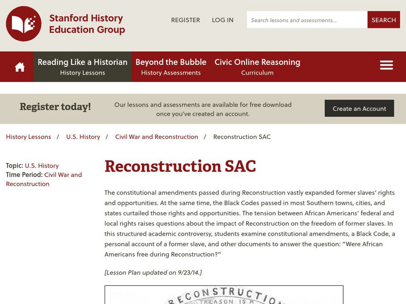 [Free Registration/Login Required] Students use primary source documents to investigate central historical questions. In this structured academic controversy, students examine constitutional amendments, a Black Code, a personal account...