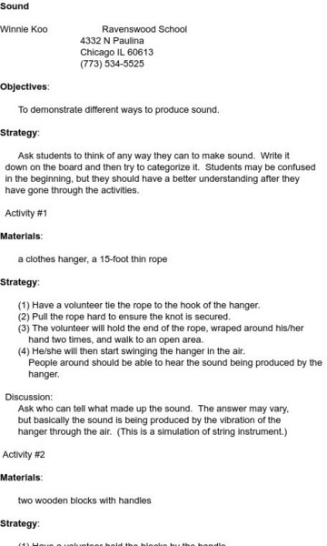 This site provides two activities that can be used in the primary elementary classroom. The purpose is to "demonstrate different ways to produce sound."