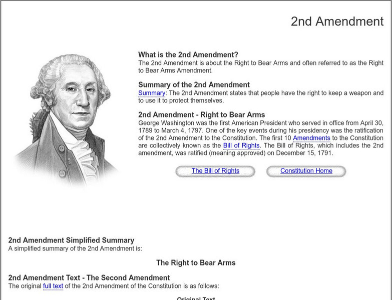 Text and summary of the 2nd Amendment to the U.S. Constitution. Site includes a timeline as well as a link to a second timeline that has hyperlinks to additional information.