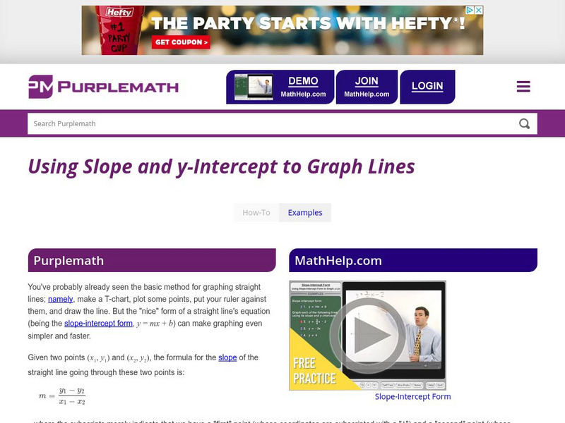 Purplemath: Using Slope and Y Intercept to Graph Lines