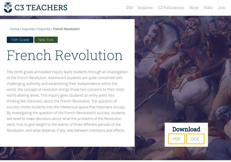 A learning module on the French Revolution that includes several supporting questions accompanied by formative tasks and source materials, followed by a summative performance task. Topics covered include conditions in France prior to the...