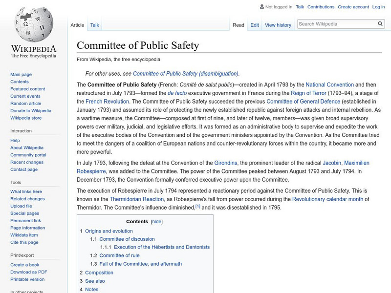 Wikipedia offers information on the Committee of Public Safety, which was set up by the National Convention during the Reign of Terror in France.