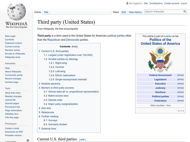 An explanation of the role of third parties, their history, and some notable third party candidates can be found in this Wikipedia article.