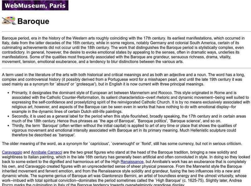 This site has a brief biography of the Baroque Era movement with links to hundreds of artists and images from different museums.