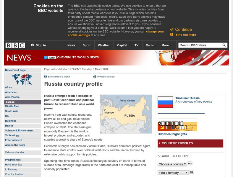 A good overview of Russia with facts, information about the leaders, and news agencies. Each news agency is linked to its site so that you can find out about the press, television, and radio in Russia.