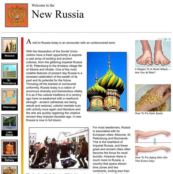 The new Russia, what does that mean exactly? Here's a colorful, easy-to-understand website that briefly explores the history, art and architecture, activities, major cities and regions of Russia.