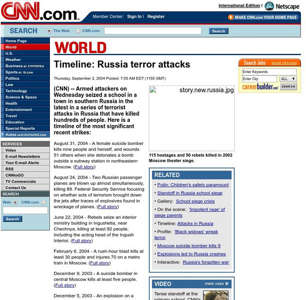From CNN, this site tracks the terrorism that is proported to be due to Chechen rebel separatists. Article begins with the June 1995 seize of hostages in a hospital in southern Russia and goes on to relate other major terrorism attacks....