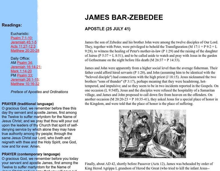 This site contains detailed information on St. James the Apostle. Includes information on his early life, and quote from the bible.