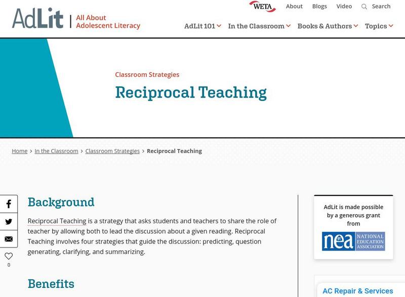 Ad lit.org: Classroom Strategies: Reciprocal Teaching