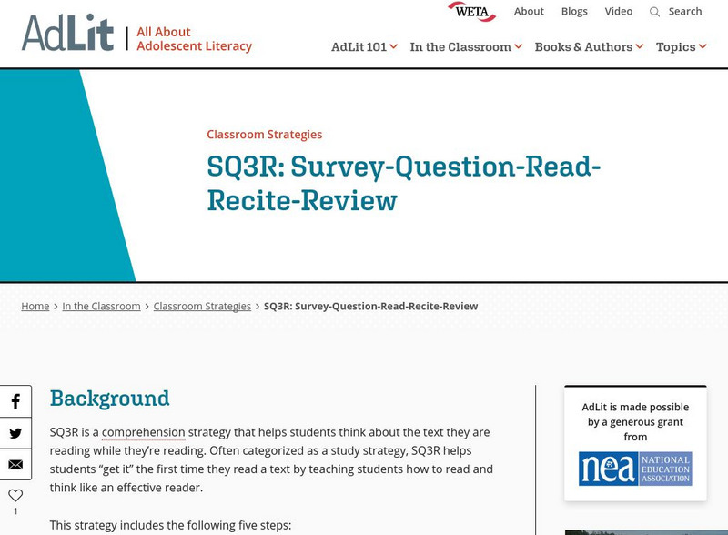 Ad lit.org: Classroom Strategies: Sq3 R: Survey Question Read Recite Review