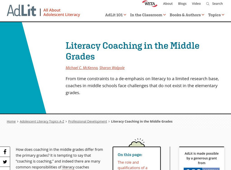 Ad lit.org: Literacy Coaching in the Middle Grades