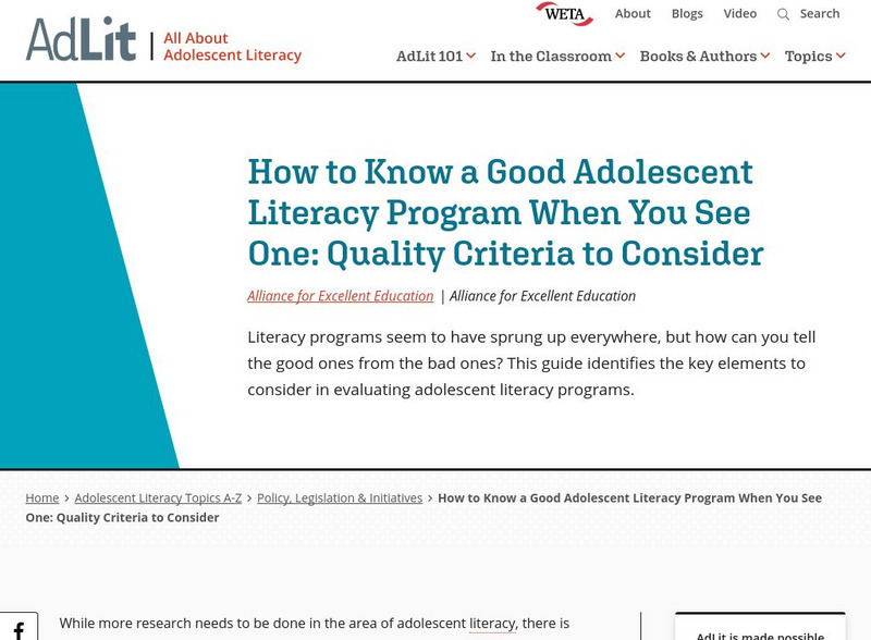 Ad lit.org: How to Know a Good Adolescent Literacy Program: Quality Criteria
