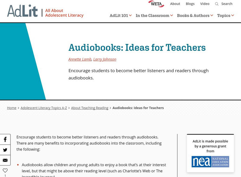 Ad lit.org: Audiobooks: Ideas for Teachers