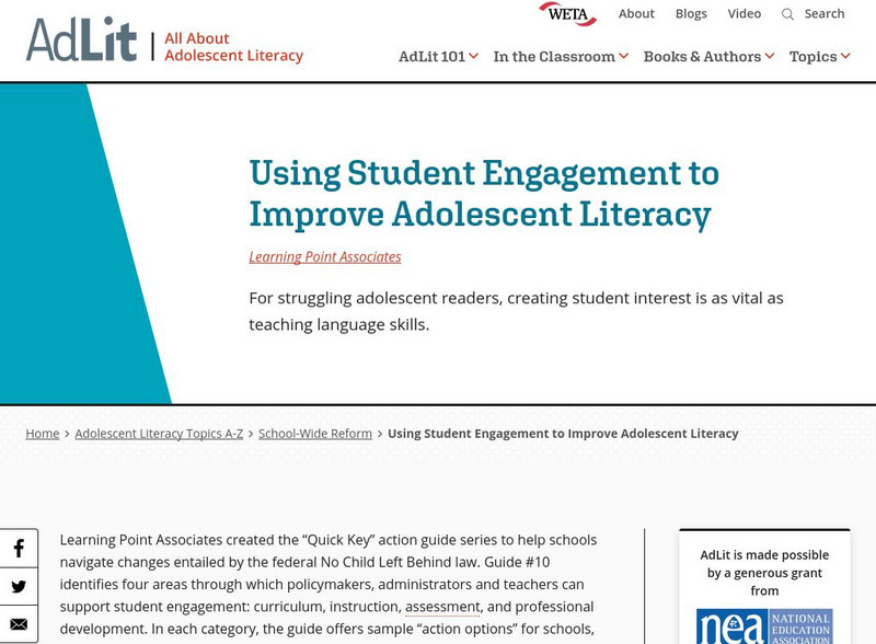 Ad lit.org: Using Student Engagement to Improve Adolescent Literacy