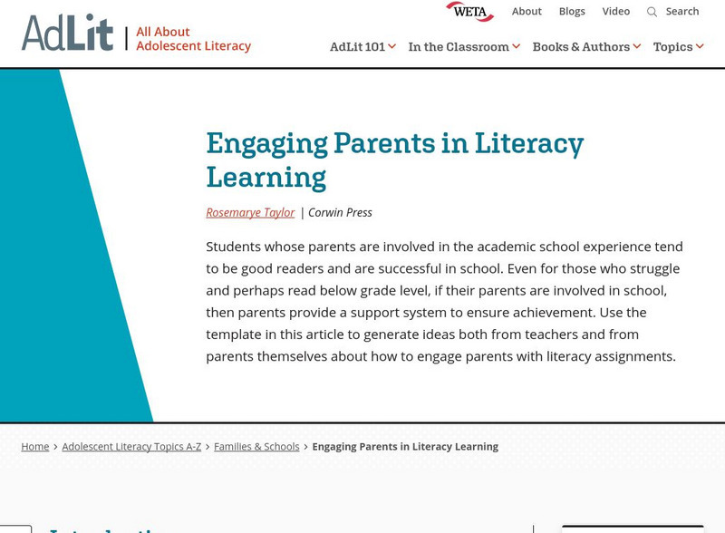 Ad lit.org: Engaging Parents in Literacy Learning