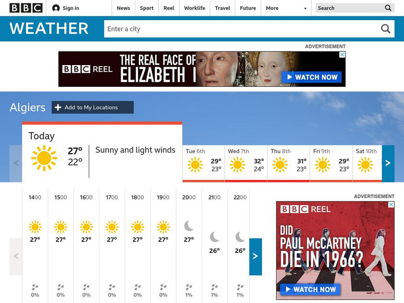 Find out about the climate of Algiers, Algeria from this BBC Weather site where you will read about the climate regions, temperature variations, precipitation, and sunshine amounts. There is also a current 5-day forecast for Algiers.
