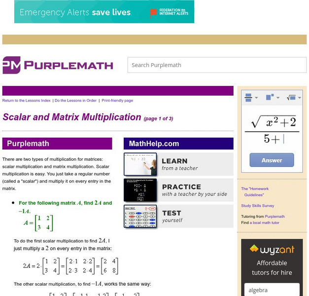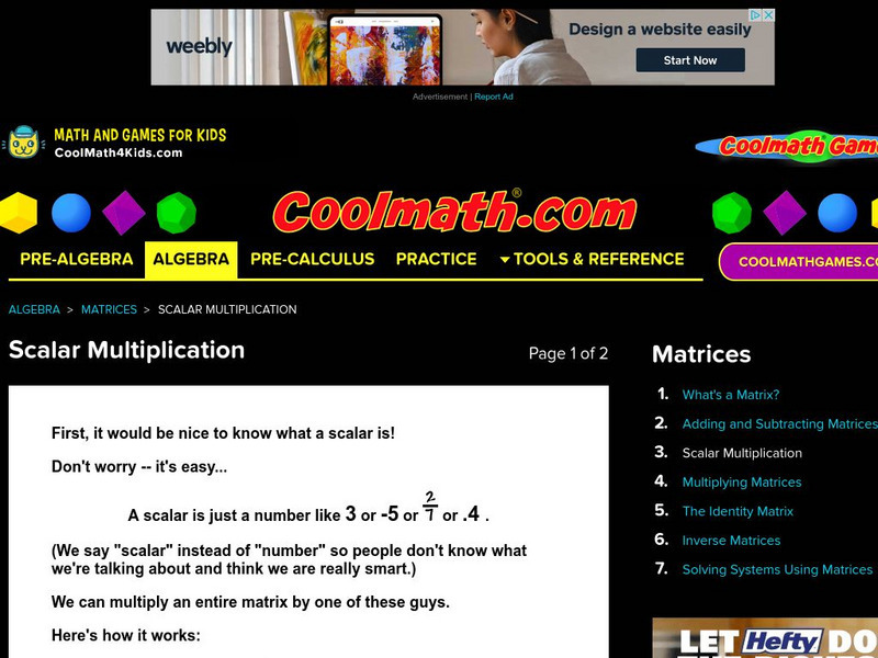 This CoolMath resource will help students understand the concept of scalar multiplication.