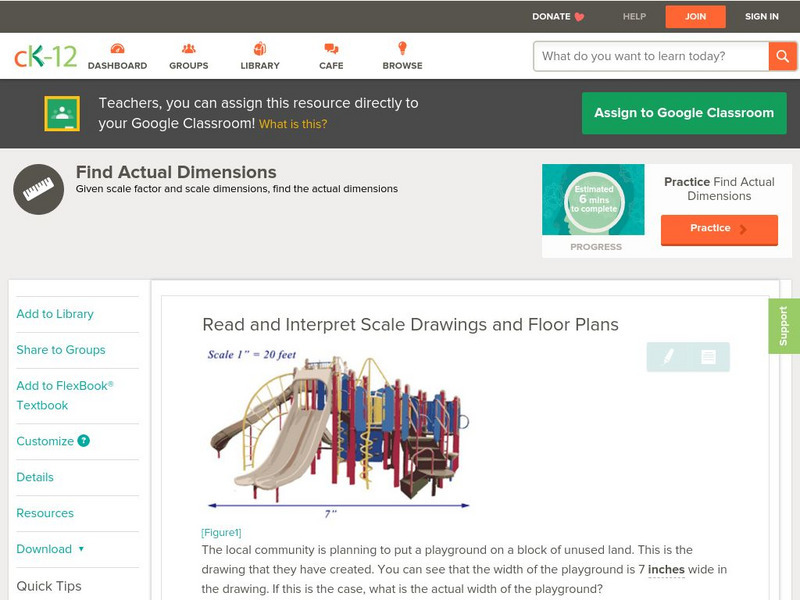 [Free Registration/Login may be required to access all resource tools.] Read and interpret scale drawings and floor plans to find scale dimensions and actual dimensions