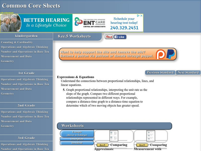 Common Core Sheets: Expressions & Equations 8.ee.5 Worksheets