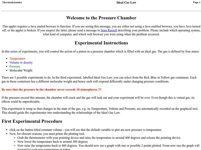 This interactive lab investigation shows students in three experiments how the Ideal Gas Law works.