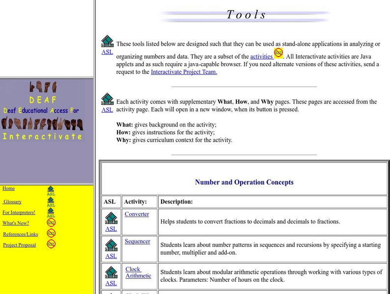 Shodor: Deaf Interactivate: Tools (With Text and Asl)