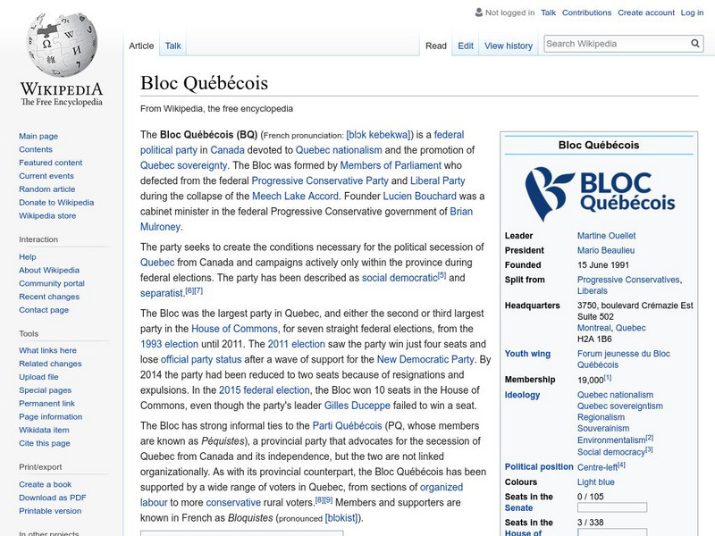 Presents the formation of the Bloc Quebecois and how this new political party would influence Canadian politics.