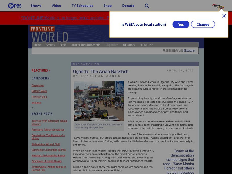 An April 2007 report from Uganda on the growing internal tensions between native Ugandans and the Asian population of that country. Also provides a forum for posting a response and links to related stories.