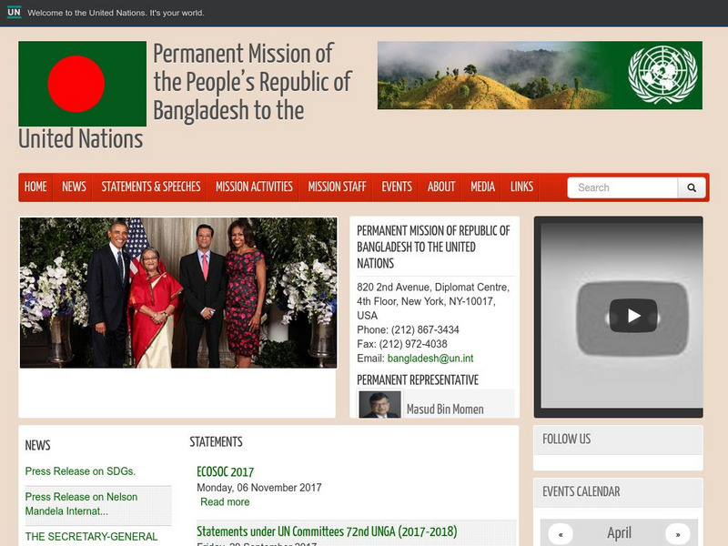 The official site of Bangladesh's representation to the United Nations. There are links that profile the country of Bangladesh, as well as Bangladesh's participation in the UN. Specifically there are statements made during most recent...