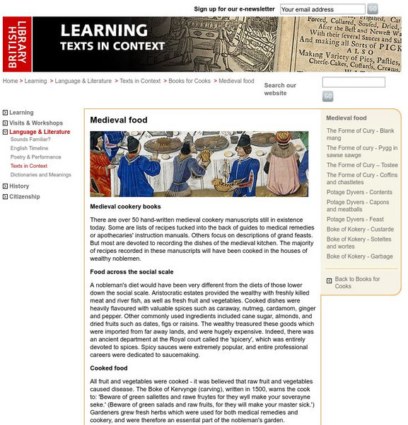 View a series of extracts from some of the oldest known cookbooks written in English. Accompanying essays explain various aspects of the medieval English diet, including the differences in food eaten by peasants and by medieval elites at...