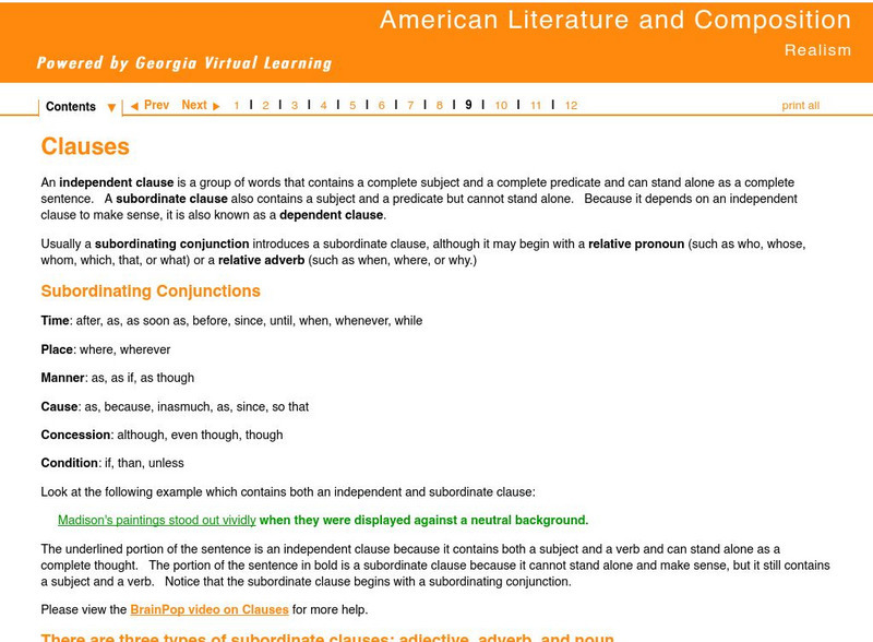 Ga Virtual Learning: American Literature and Composition: Realism: Clauses