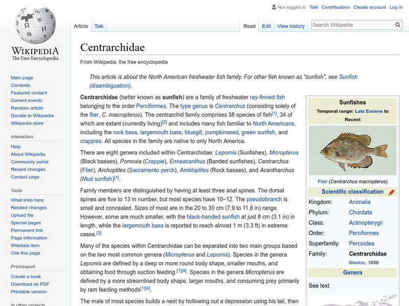 A brief scientific description of the family of fish known as sunfishes (scientific family name Centrachidae), which includes fish like bluegills, large mouth and rock bass, and crappies. It provides a general physical description and...