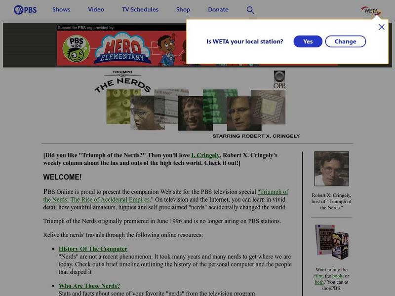This page is the companion website to the PBS television special, Triumph of the Nerds. Coverage includes a history of the computer, a who's who, and a television transcript.