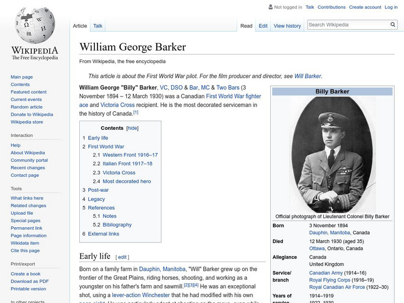 A biography on one of the most successful and notorious of WWI flying Aces. Quotes are included here.