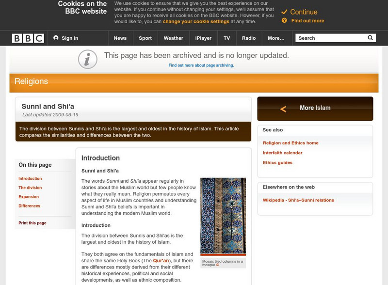 An informative site to help explain the differences between Sunni and Shia (Shiite) Muslims. Discusses their beginnings and their split into two differently thinking groups.