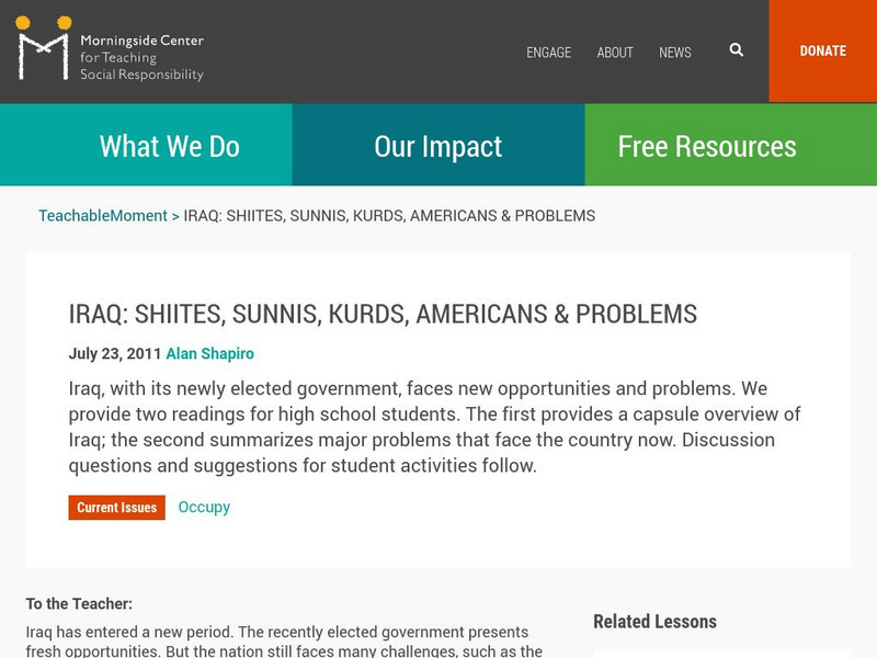 Teachable moment.org: Iraq: Shiites, Sunnis, Kurds, Americans, and Problems