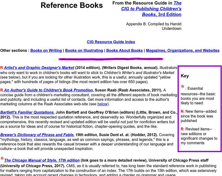 A comprehensive list of general reference books concerning children's literature and publishing. Includes dictionaries, publishing guides, and manuals of style.