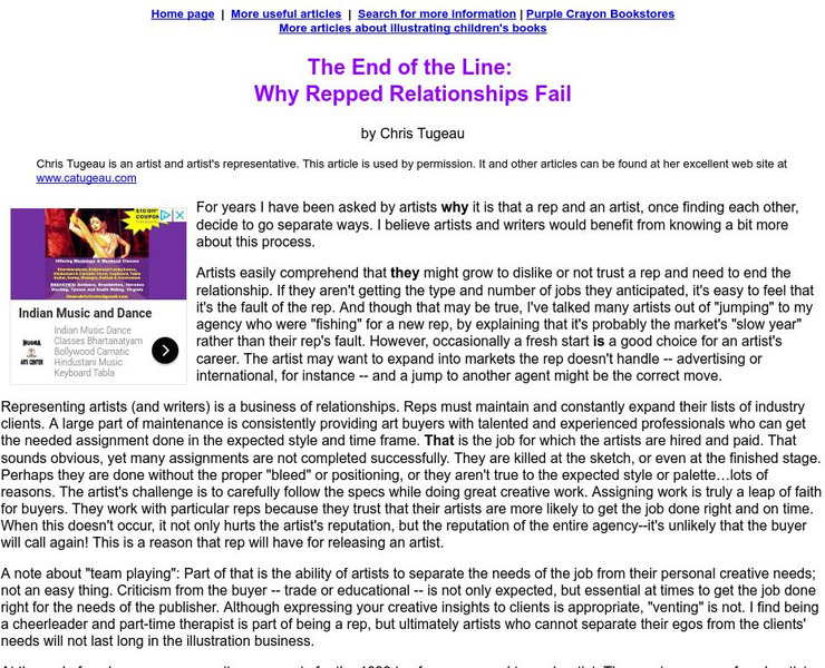 An article concerning the relationships between artists and agents. Discusses why many agent relationships fail, but can be used as a good resource for researching agent relationships for publishing.