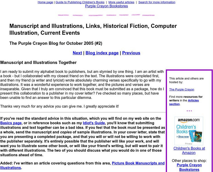 A book review of "Writing with Pictures: How to Write and Illustrate Children's Books." Includes critical information, contents and comments, as well as a link to the book's Amazon.com page. A good resource for anyone interested in...