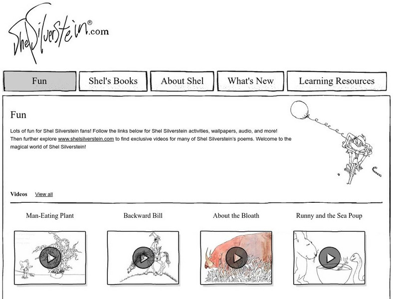 Resource contains a number of fun Shel Silverstein themed activities. The games and puzzles section has cryptograms, poetry games, and quizzes about Shel's poems. The printables section has a drawing and activity booklet, a poetry kit,...