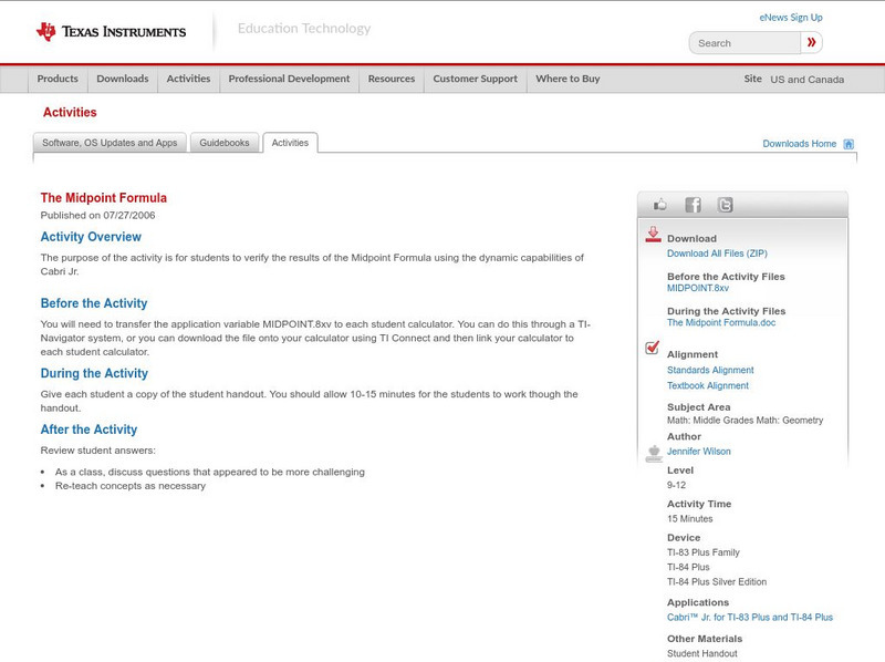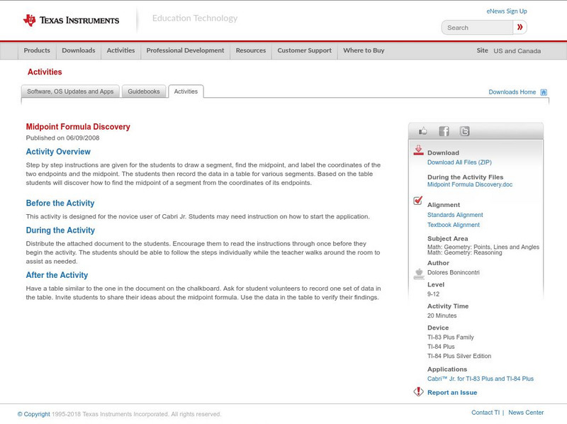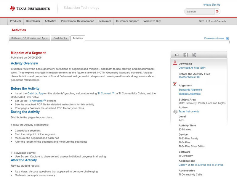 [Free Registration/Login Required] Students explore the concept of midpoints and segment bisectors by navigating through the interactive learning module and then answering questions that go along with the module. Students can also learn...
